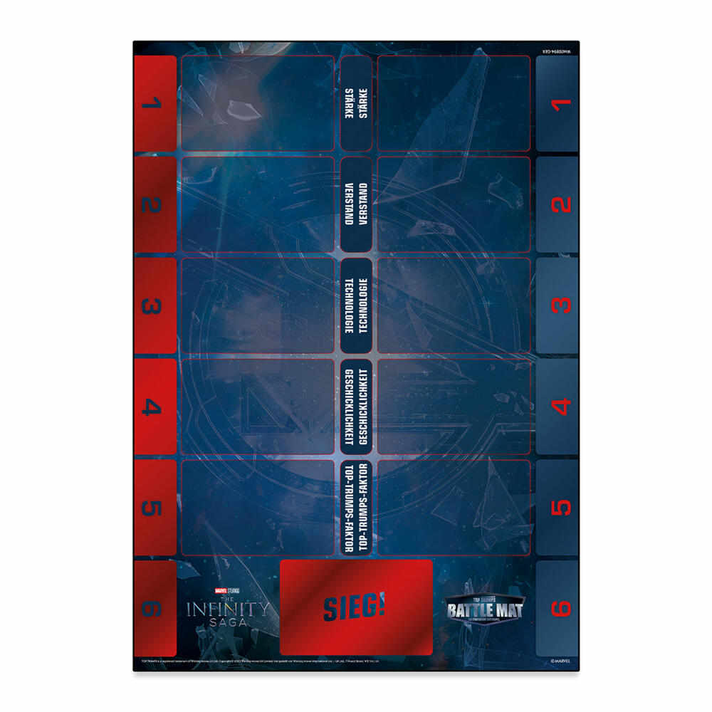 Are Iron Man, Captain America and Thor your favourite superheroes? And you like playing Quartet? Then take your fun to a new level with the brand new TOP TRUMPS Battle Mat Marvel! Get the popular TOP TRUMPS Marvel Cinematic Universe with this special playing field and let your favourite heroes compete against each other. What is the Battle Mat? With this unique accessory you can turn the popular game TOP TRUMPS into a board game and make the game even more fun!