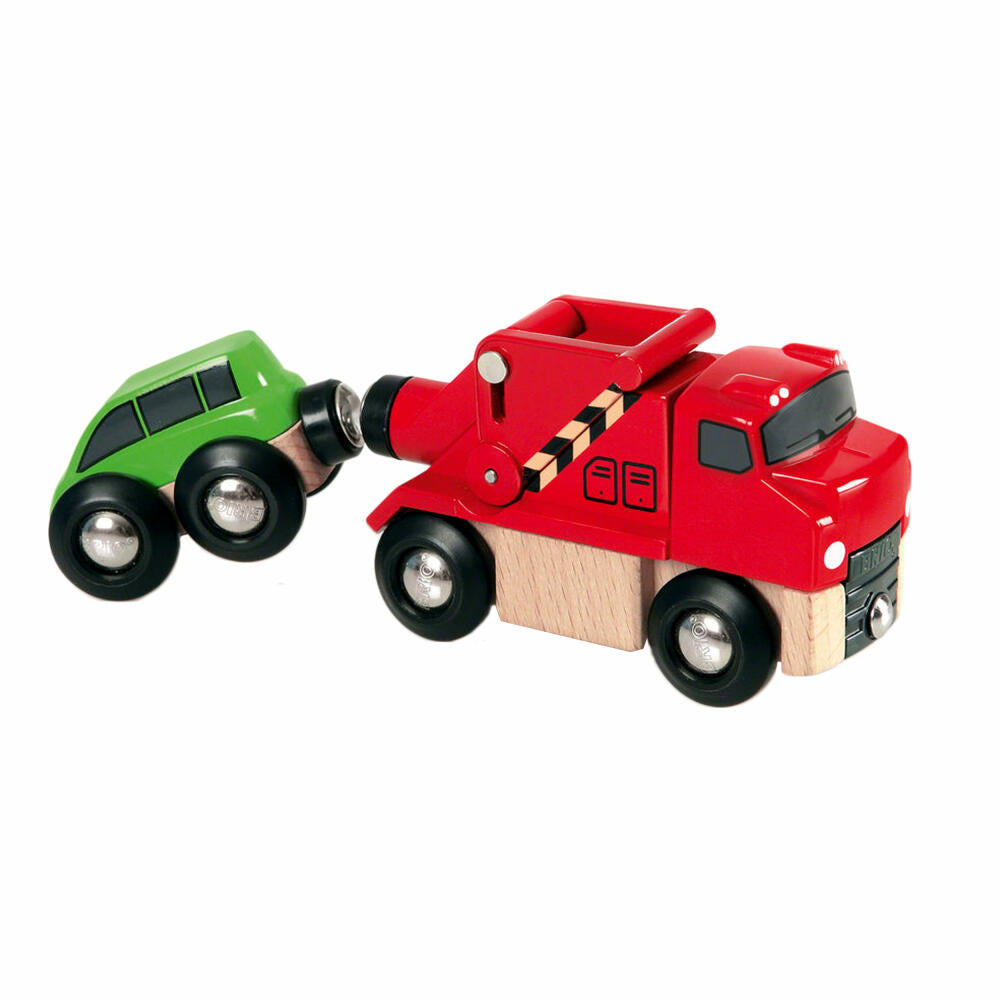 BRIO Abschleppwagen mit Auto, 2-tlg., Zubehör für die Holzeisenbahn, Eisenbahn, Holzspielzeug, Holz Spielzeug, 33528