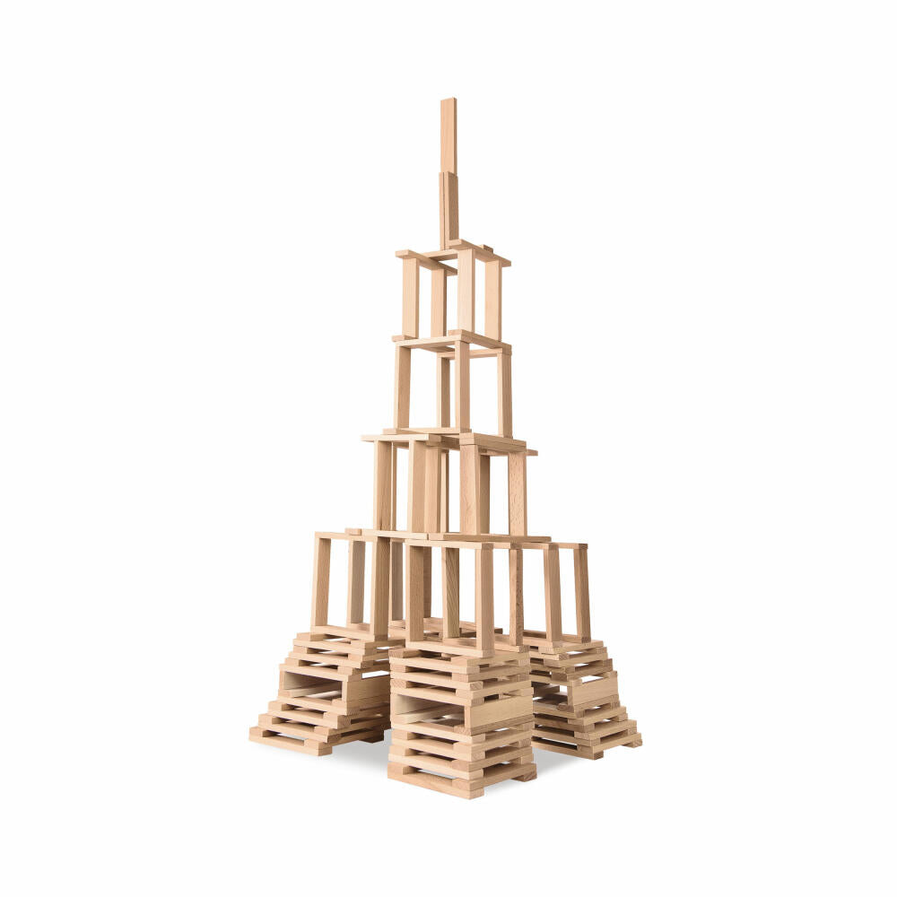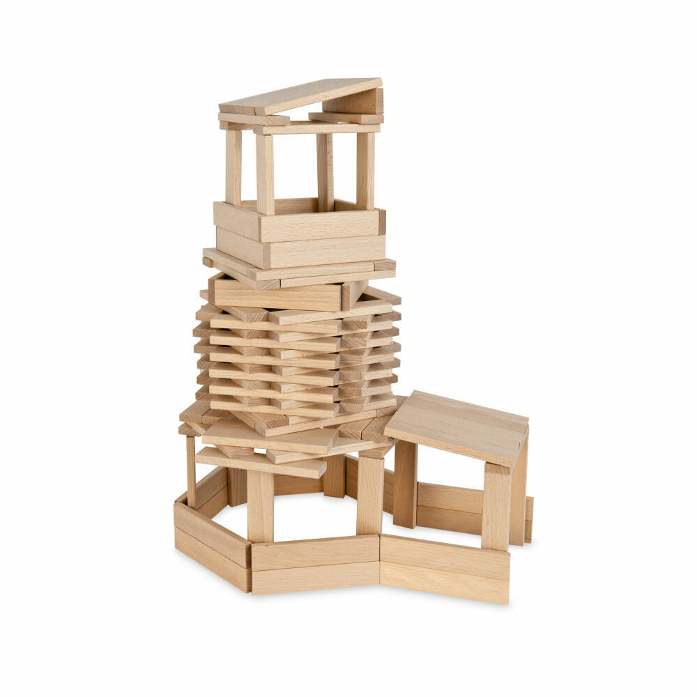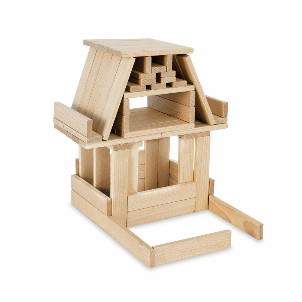 Mit dem Holzbaukasten von Eichhorn können Kinder ihrer Fantasie freien Lauf lassen oder mit Hilfe der Bauanleitung tolle Bauwerke erstellen. Für die Herstellung der 200 naturfarbenen Holzbausteine wird ausschließlich FSC 100% Holz aus nachhaltiger Forstwirtschaft verwendet.