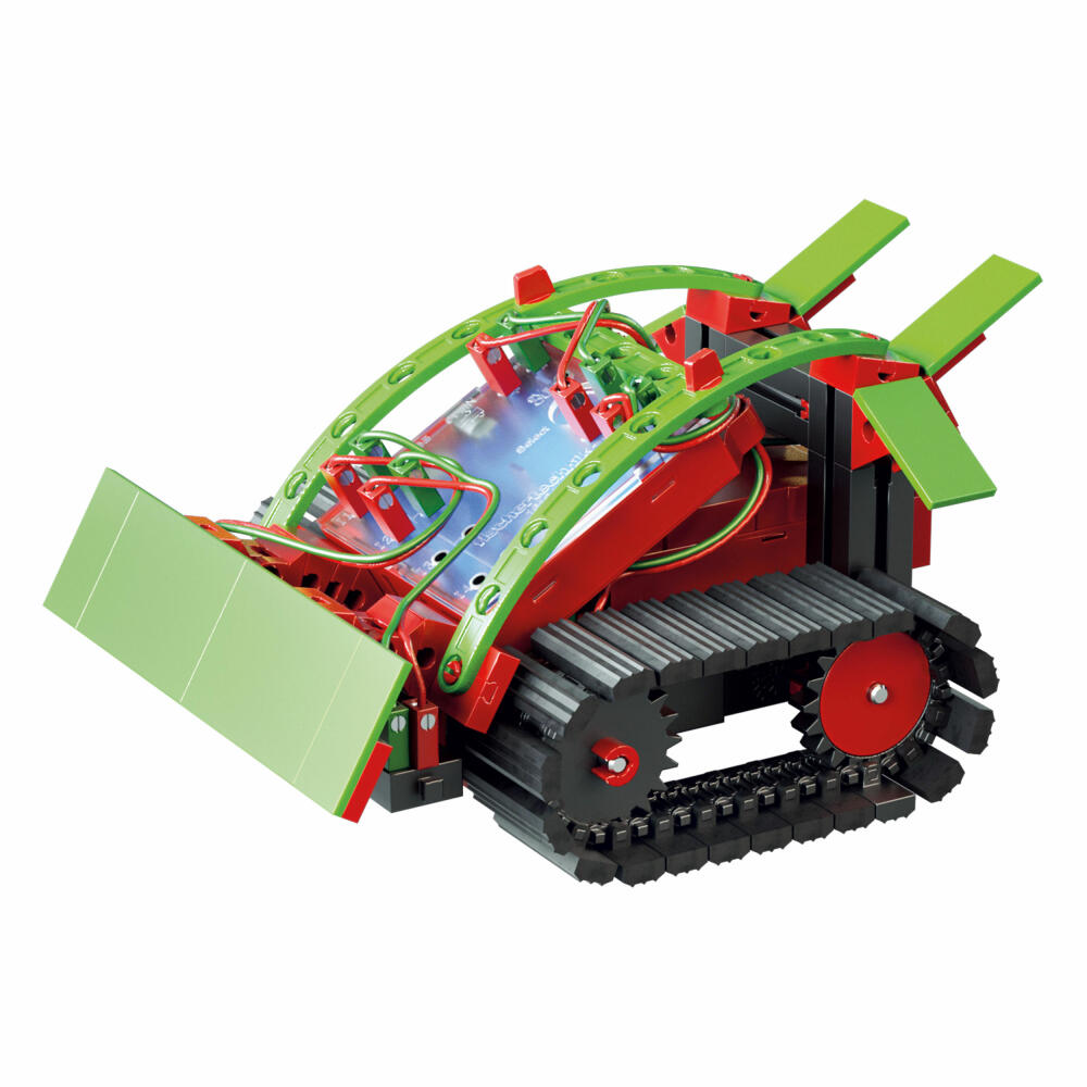 Das komplette Einsteigerpaket für Kinder. Aus über 380 Bauteilen und mit Hilfe der Sensoren (Fototransistoren, Taster) und der Aktoren (XS Motoren, Lichtschranken LEDs) können Kinder 12 leicht verständliche Modelle wie Händetrockner, Karussell, Schranke, Förderband mit Stanzmaschine oder auch mobile Raupenmodelle konstruieren. Die Steuerung »BT Smart Controller« mit 4 Eingängen für Sensoren und 2 Ausgängen für Motoren oder Lampen verfügt über eine USB-Schnittstelle und eine Bluetooth 4.0 Schnittstelle. Die Software »ROBO Pro Light« (zum Download) ermöglicht eine schnelle, anschauliche und leicht verständliche Programmierung der Modelle. Zusätzlich gibt es auch die Möglichkeit die Modelle mit dem Tablet (iOS/Android) über eine App zu programmieren. Das ausführliche didaktische Begleitmaterial, welches auf dem fischertechnik eLearning Portal (fischertechnik-elearning.com) zur Verfügung steht, unterstützt den Lernprozess der Kinder und erklärt leicht verständlich die Programmierung. Für die Ingenieure und Programmierer von morgen.