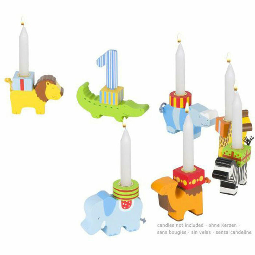 Mit dieser süßen Tierparade wird jeder Geburtstagstisch zum absoluten Hingucker! Nashorn Löwe Zebra Elefant Krokodil Kamel und Giraffe tragen Kerzen oder eine Zahl auf dem Rücken. Das Set besteht aus 7 Tieren und 10 Zahlen (1-10) die austauschbar sind. Länge: 58cm. Passende Kerzen: 87006611.