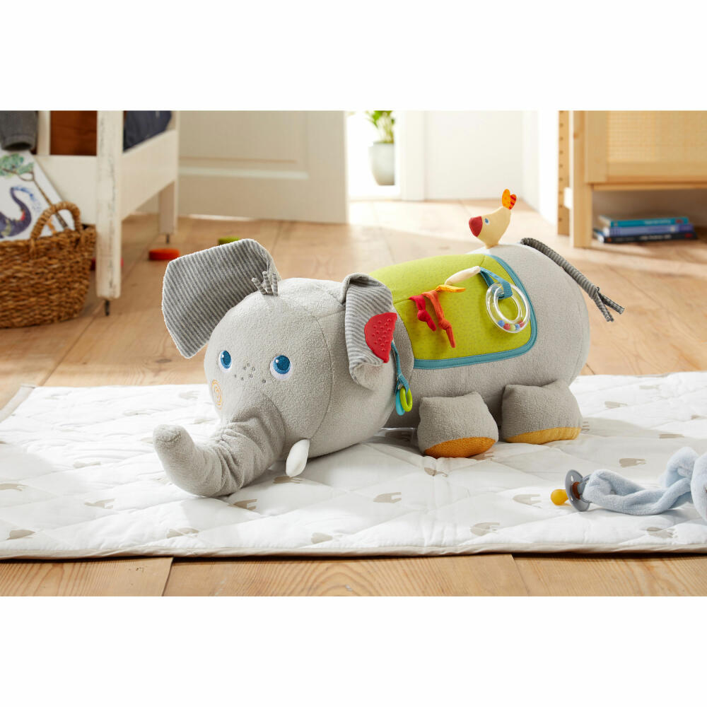 • Das große Entdeckertier Elefant von HABA lädt Babys ab 6 Monaten zum Greifen, Erkunden und Kuscheln ein, Länge 70cm
