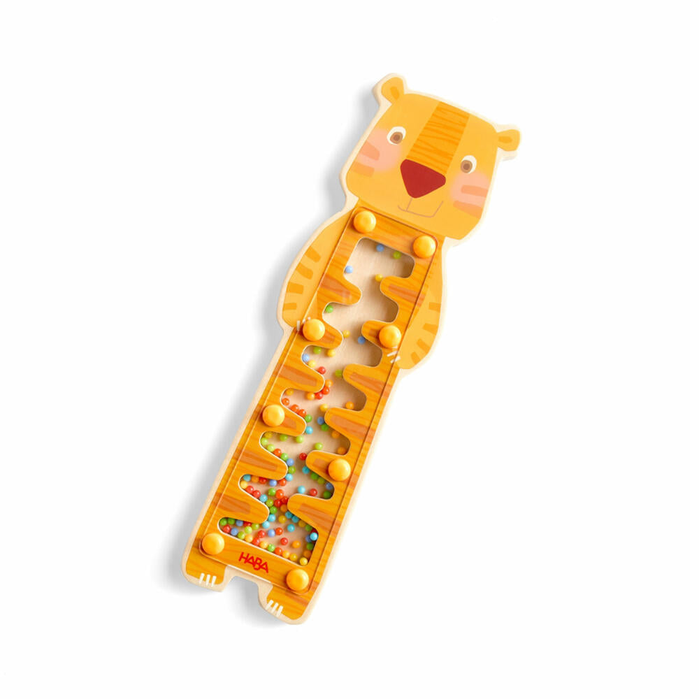 Wenn die vielen bunten Kugeln im Bauch des lustigen Tigers bewegt werden, machen sie interessante Geräusche und es sieht toll aus. Kinder können außerdem mit der Neigung experimentieren und so die Lautstärke und die Geschwindigkeit der Kugeln beeinflussen.