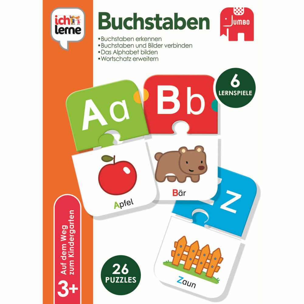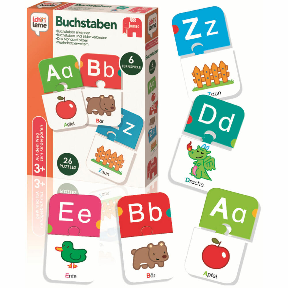 Jumbo Spiele ich lerne Buchstaben, Lernspiel, Kinderspiel, Alphabet, Puzzle, Legespiel, 19548