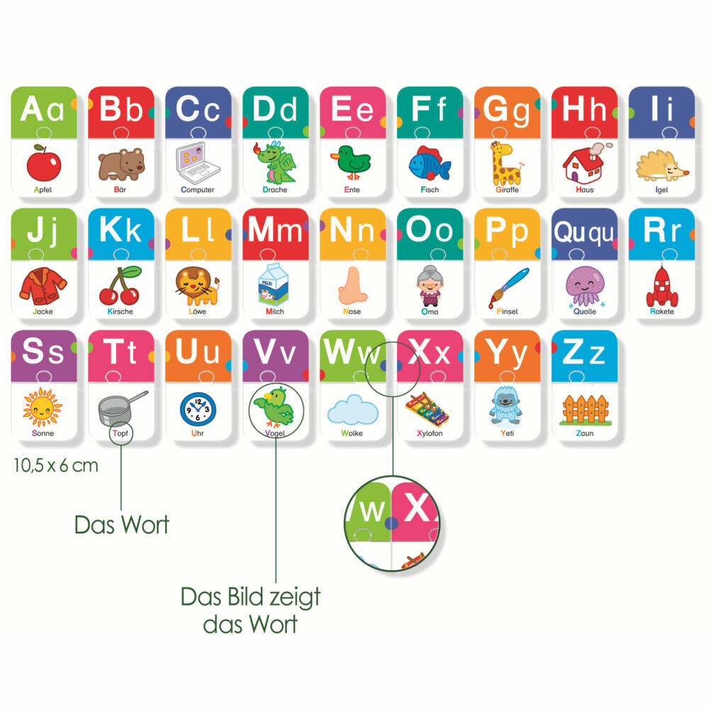Findest du ein Wort, dass mit dem Buchstaben A beginnt? Lerne anhand von 6 Spielen die Buchstaben des Alphabets. Puzzle das richtige Bild an die Karte. Die Spiele können sowohl alleine als auch mit mehreren Spielern gespielt werden. Der Schwierigkeitsgrad steigt von Spiel zu Spiel und die Richtigkeit der Übungen kann mithilfe der Selbstkontrollfunktion geprüft werden. Ich lerne Buchstaben: Buchstaben erkennen, Buchstaben und Bilder verbinden, Das Alphabet bilden, Wortschatz erweitern.