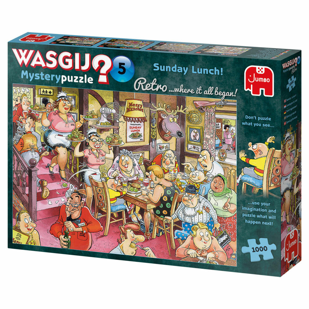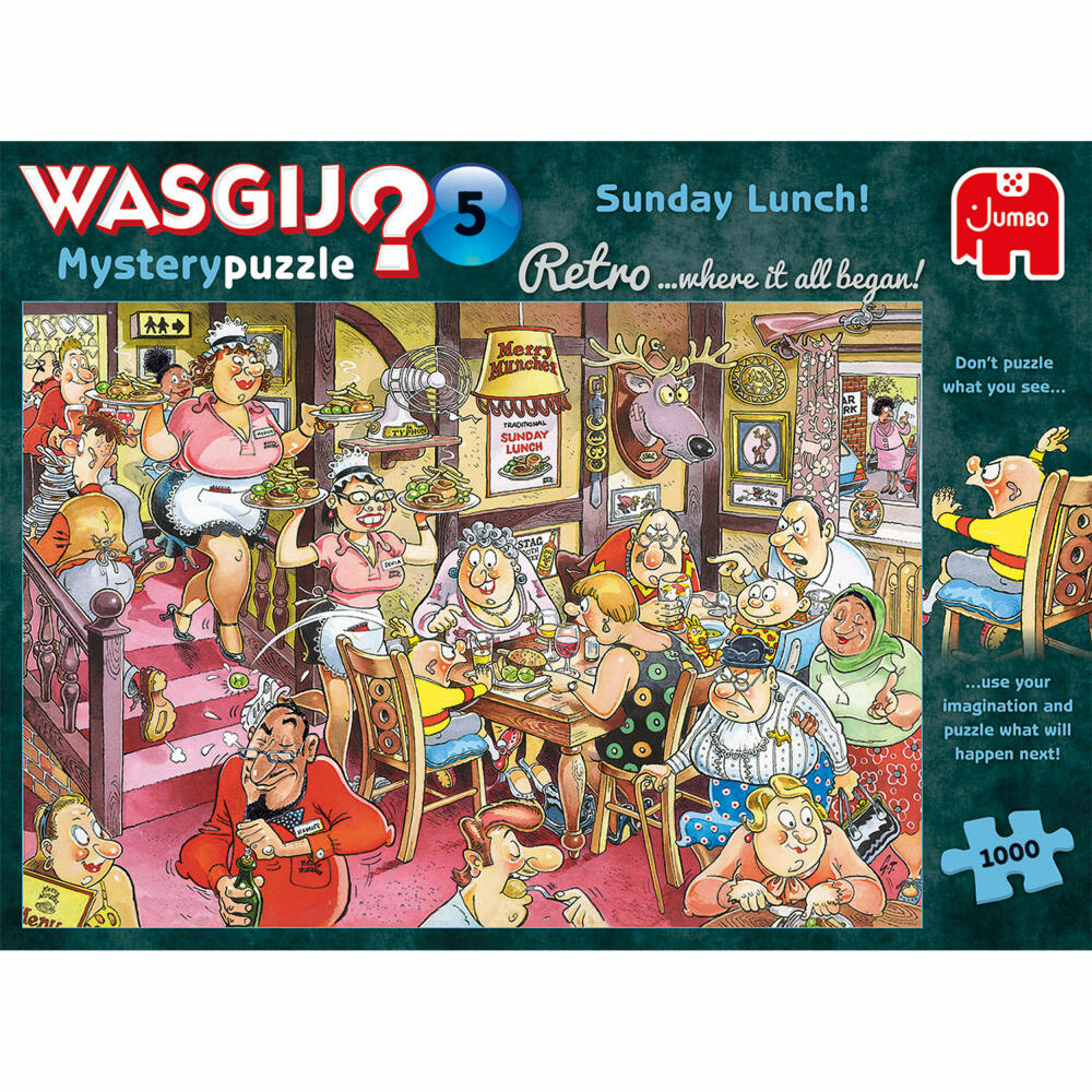 Jumbo Spiele Wasgij Retro Mystery 5 - Sonntagsessen!, Puzzle, Mysterypuzzle, Rätsel, 1000 Teile, 25009