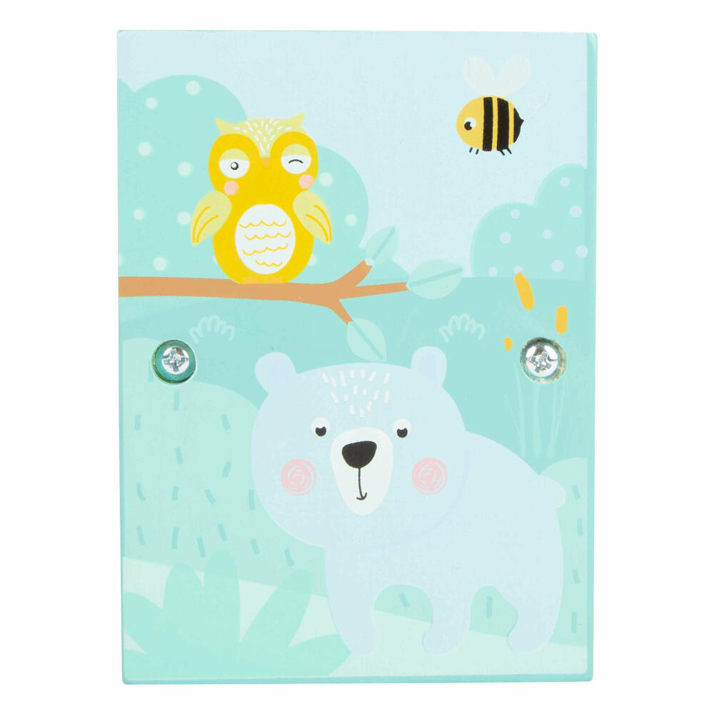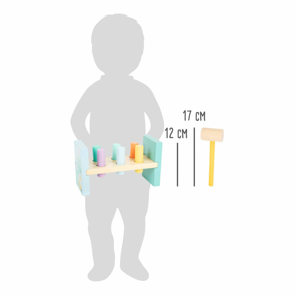 So stylisch kann Hämmern sein! Jetzt können Kinder ihre Kräfte messen, indem sie die in zarten Pastellfarben gehaltenen Holzstäbe mit dem Holzhammer nach unten schlagen. Gummierungen in den Einschlaglöchern halten die Stäbe in Position. Ein Spielklassiker, der Hand-Augen-Koordination und motorische Fähigkeiten trainiert. Die Farbgebung und die niedlichen, kindgerechten Tiermotive machen die Klopfbank zum Dekoelement im Kinderzimmer. Wenn alle Zylinder unten sind, kann die Bank einfach umgedreht werden und der Spaß von vorne beginnen.