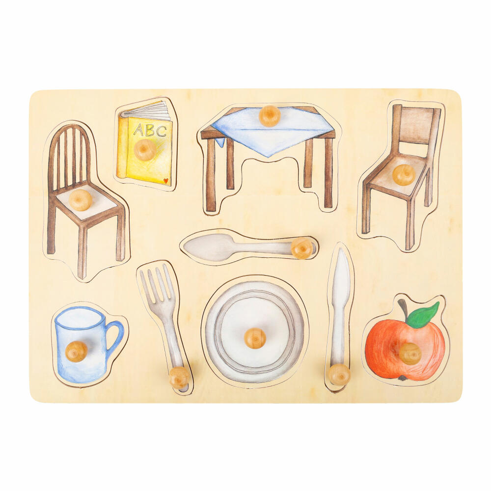 Wer kennt diese Alltagsbegleiter? Dieses robuste Setzpuzzle aus Holz beinhaltet liebevoll illustrierte Puzzleteile mit Holzknopf - dabei dreht sich alles um bekannte Alltagsgegenstände. Die Puzzleteile lassen sich gut von Kleinkindern greifen und in die vorgestanzte Form setzen. So wird ganz spielerisch die Feinmotorik und Geduld gefördert. Wer hat heute was erlebt?
