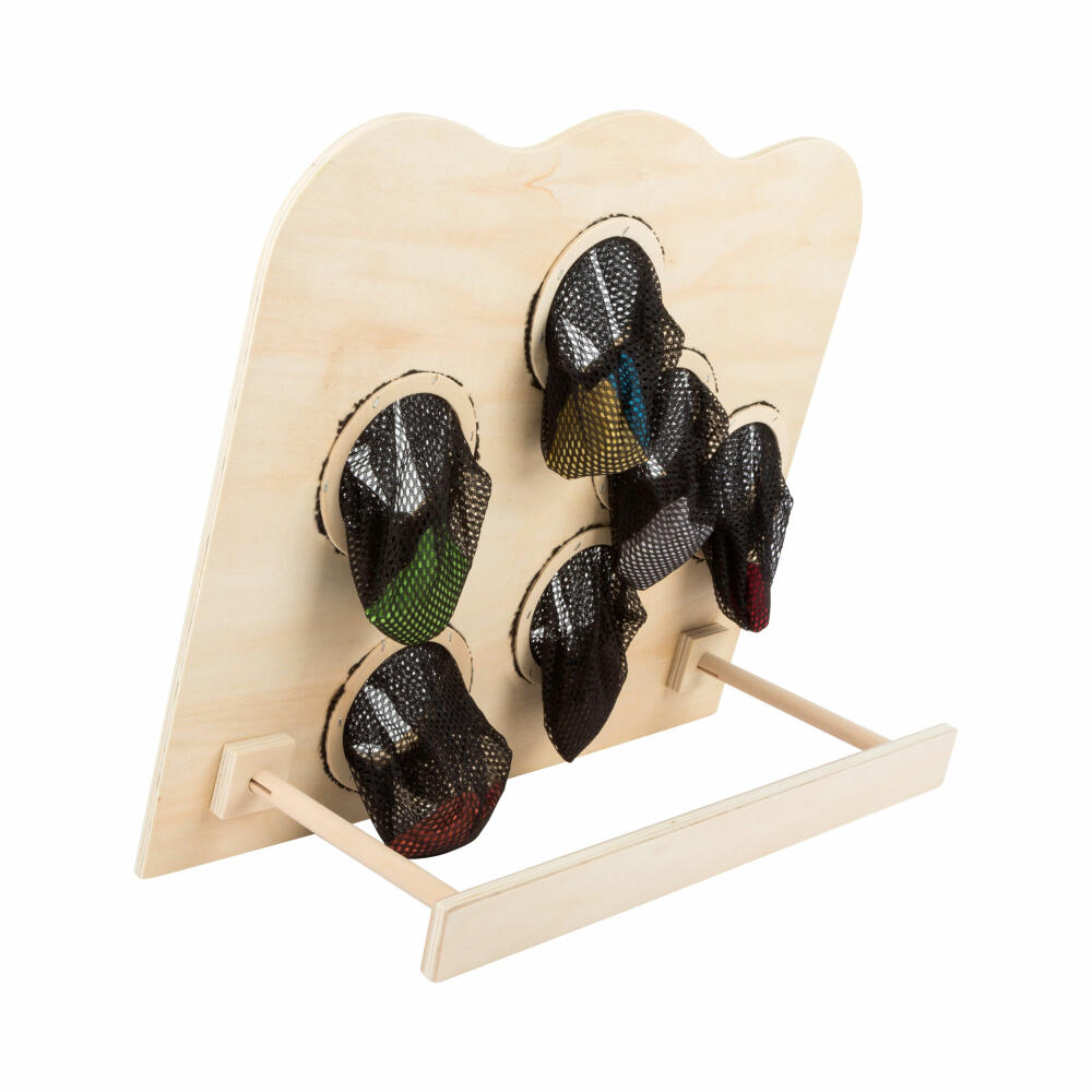 Superbuntes Wurfspiel mit Fangnetzen, inkl. Wurfkissen. Die Löcher sind unterschiedlich groß und je kleiner ein Loch ist, desto schwieriger wird ein Treffer zu erzielen sein - aber die Punktzahl ist ein Ansporn, es zu versuchen! Dieser kleine Artikel benötigt wenig Platz und ist ideal für’s Spielen im Zimmer geeignet!