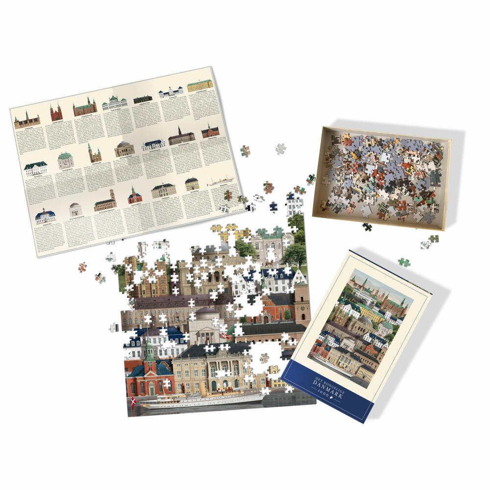 In diesem Puzzle wurde das königliche Dänemark in 1000 Teile zerteilt. Lerne das Ambiente und die königlichen Gebäude des royalen Dänemarks kennen, während du dieses Puzzle zusammensetzt. Neben dem Puzzle befindet sich auch ein Poster mit dem Puzzle-Motiv sowie eine Liste mit allen abgebildeten Gebäuden im Lieferumfang.