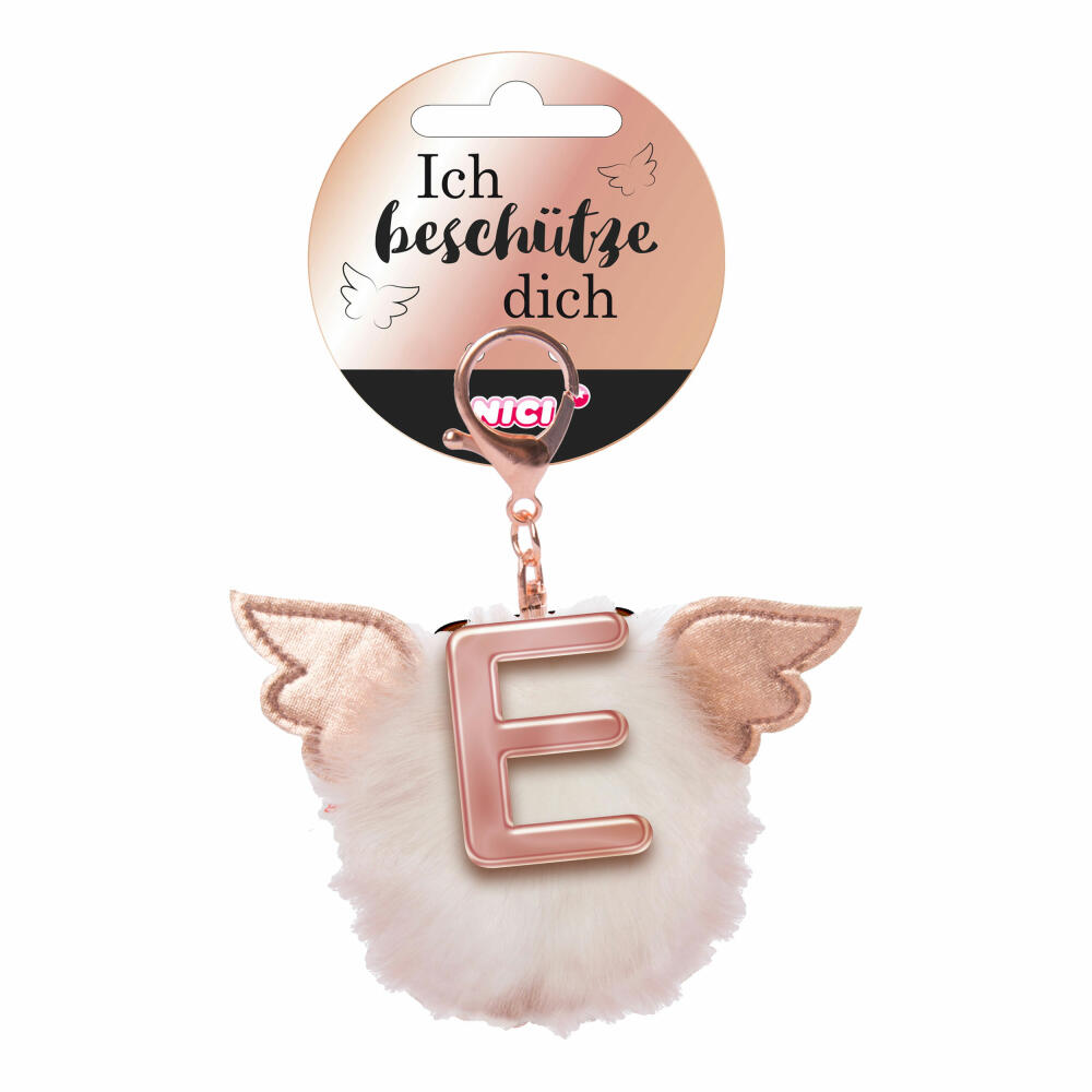 NICI Schutzengel Schutzbommel ABC-Anhänger, Buchstabe E, Taschenanhänger, Schlüsselanhänger, Bommel mit Flügeln, Plüsch, 46974