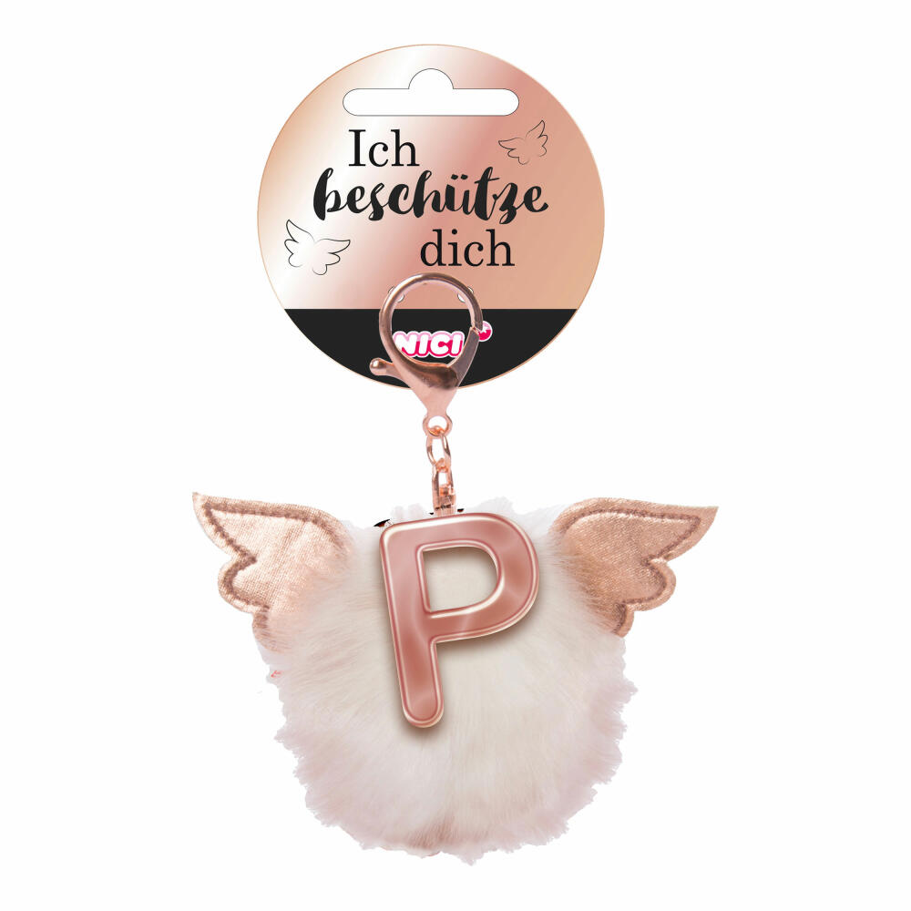 NICI Schutzengel Schutzbommel ABC-Anhänger, Buchstabe P, Taschenanhänger, Schlüsselanhänger, Bommel mit Flügeln, Plüsch, 46985