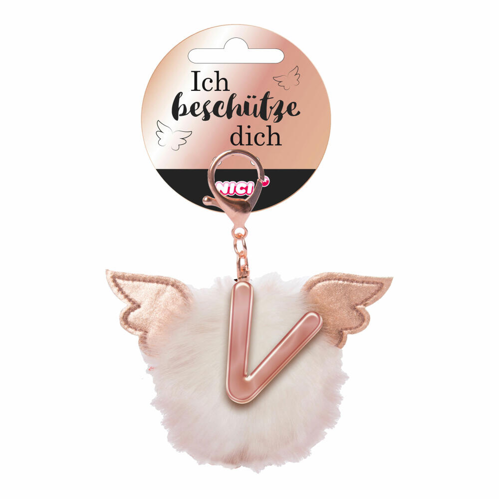NICI Schutzengel Schutzbommel ABC-Anhänger, Buchstabe V, Taschenanhänger, Schlüsselanhänger, Bommel mit Flügeln, Plüsch, 46990