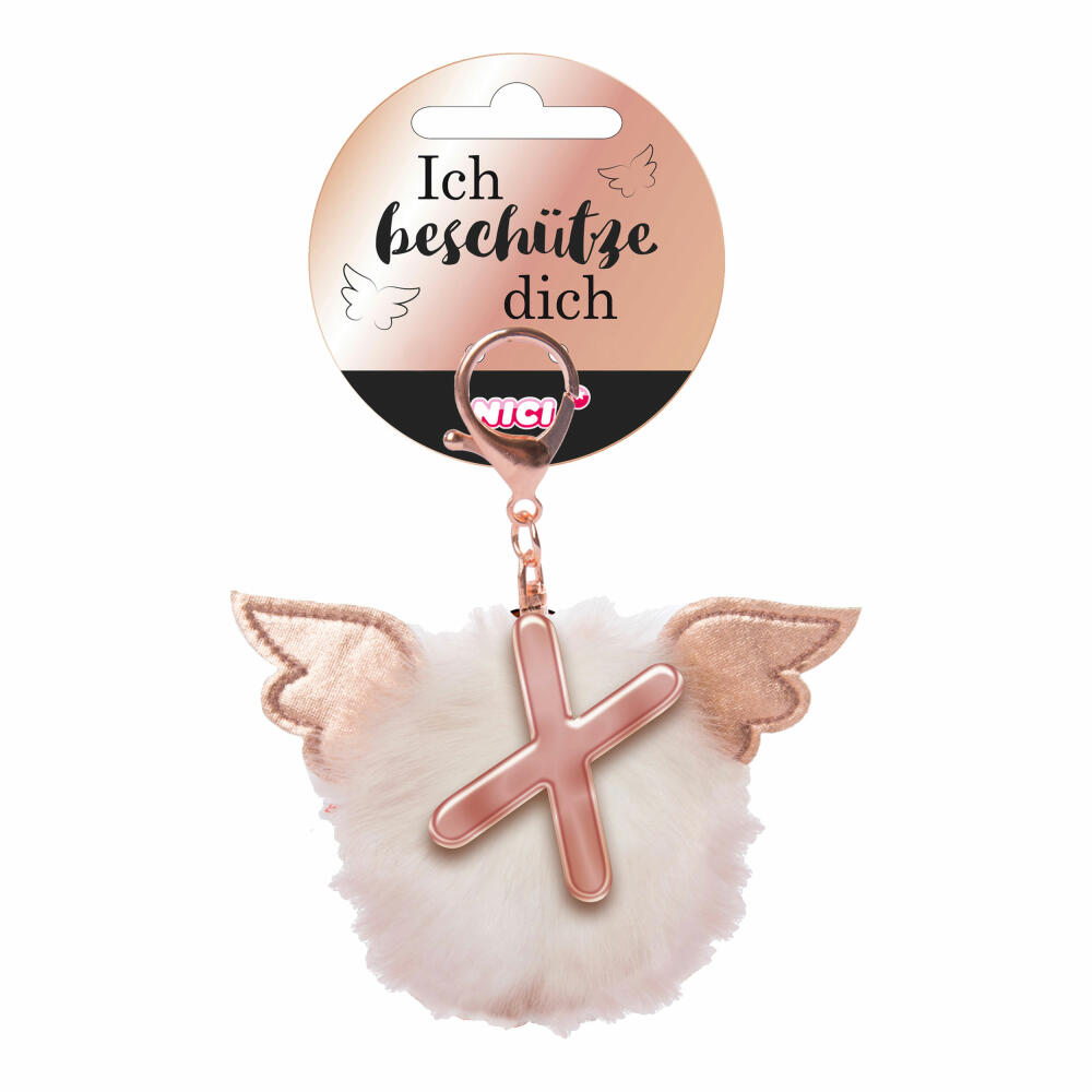 NICI Schutzengel Schutzbommel ABC-Anhänger, Buchstabe X, Taschenanhänger, Schlüsselanhänger, Bommel mit Flügeln, Plüsch, 46992