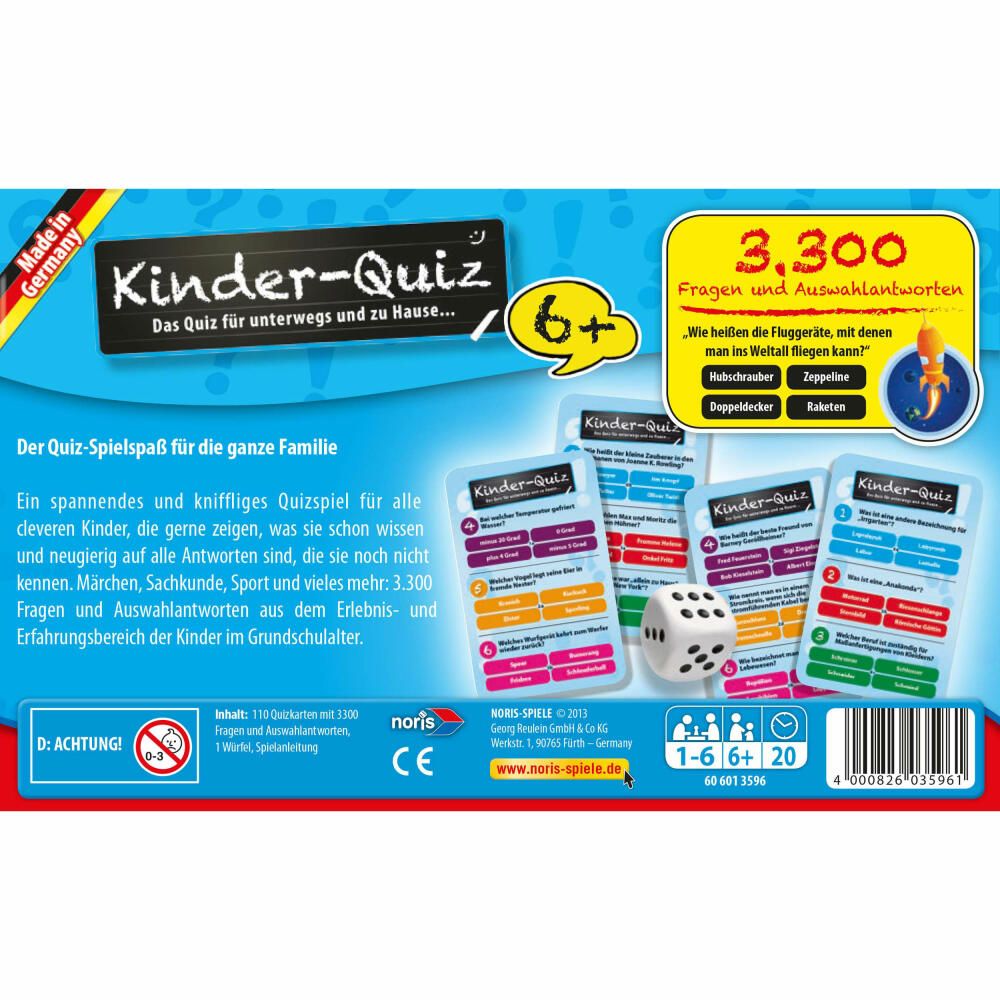 Noris Kinderquiz für schlaue Kids, Quiz, Ratespiel, Wissensspiel, Lernspiel, Kinder, Spiel, 6+, 606013596
