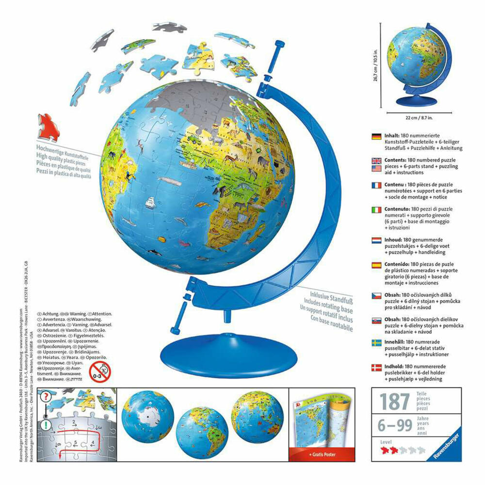 Ravensburger 3D-Puzzle-Ball Kinderglobus in deutscher Sprache, dreidimensionales Puzzle, 180 Teile, 11160