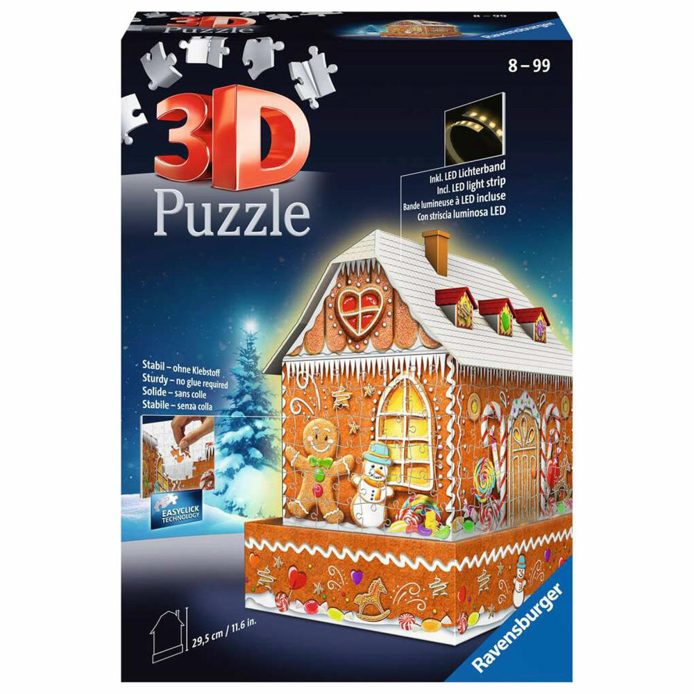 Ravensburger 3D-Puzzle Lebkuchenhaus bei Nacht, dreidimensionales Puzzle, 216 Teile, 11237