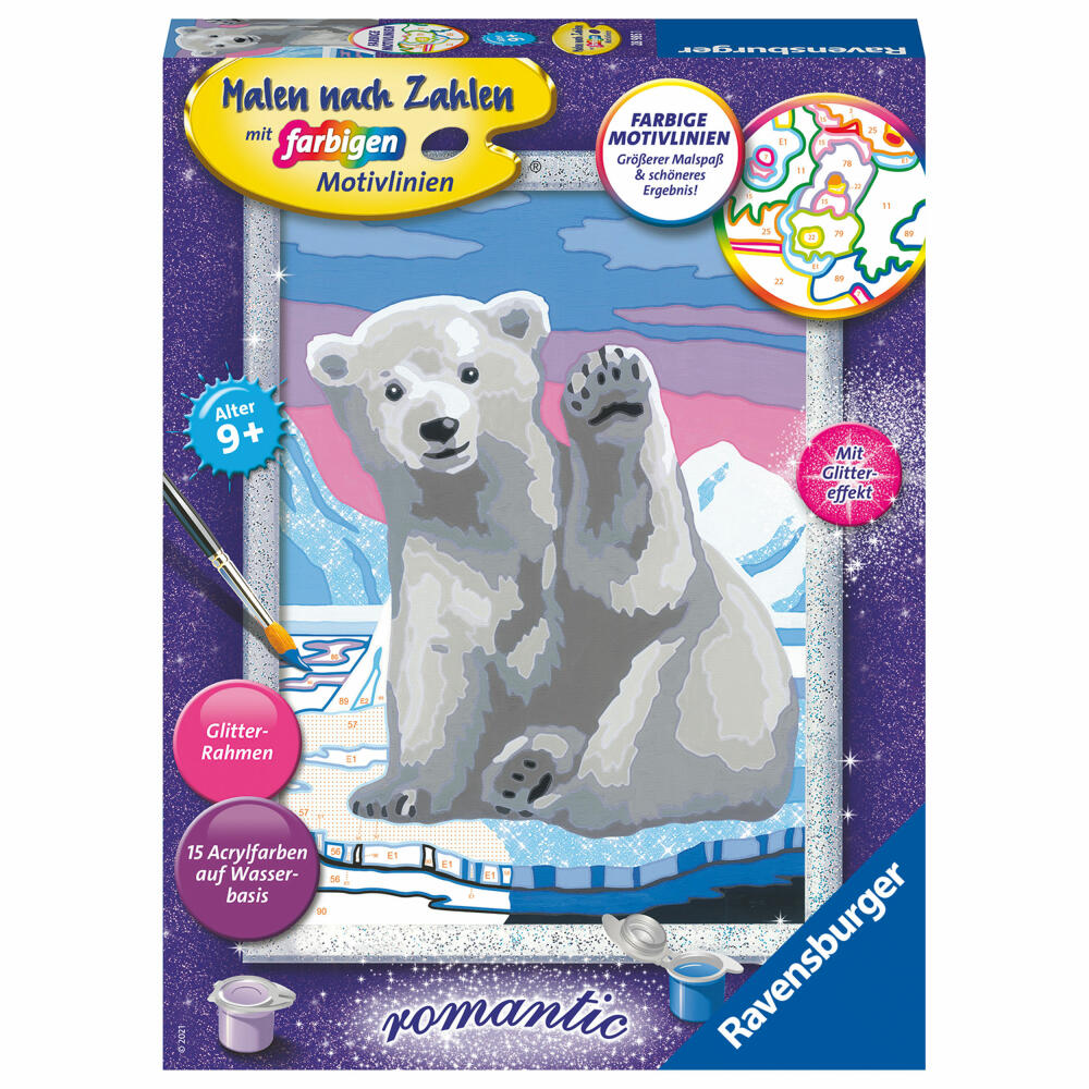 Ravensburger Malen nach Zahlen Hallo, kleiner Eisbär!, Romantic, Mal Set, Malvorlage, Vorlage, Bild, Kinder, 28985