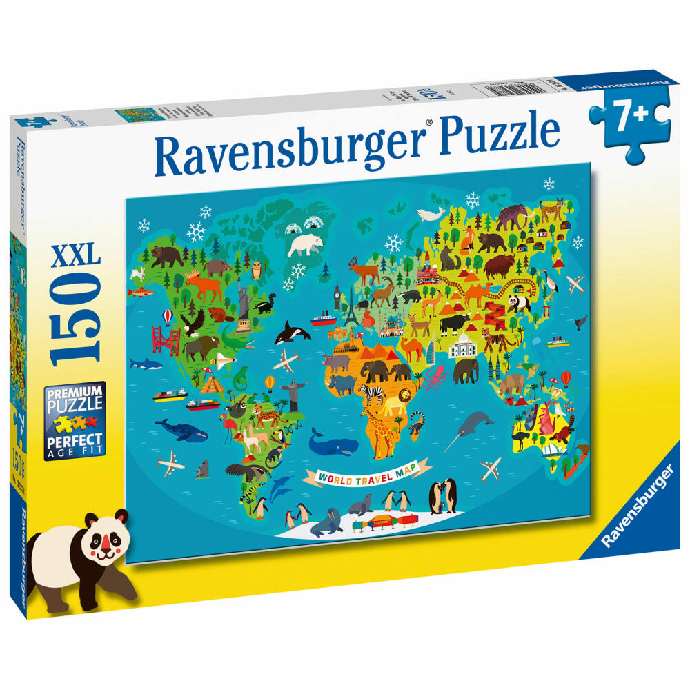 Ravensburger Tierische Weltkarte, Kinderpuzzle, Kinder Puzzle, 150 Teile, 13287