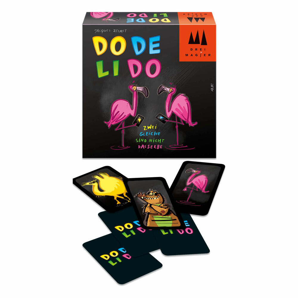 Bei diesem rasanten Kartenspiel muss schnell geschaltet werden! Wer an der Reihe ist, legt seine oberste Handkarte offen auf einen der drei Ablagestapel. Nun ruft er blitzschnell, was in der Mitte zu sehen ist: Tier, Farbe oder Dodelido! Klingt einfacher, als es ist, zumal die langsame Schildkröte und das bissige Krokodil gerne für Abwechslung sorgen! Wer fehlerlos spielt, gewinnt!