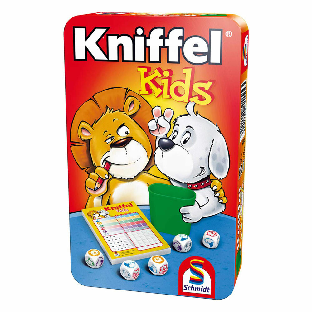 Schmidt Spiele Kniffel Kids, Bring-Mich-Mit-Spiel in Metalldose, Brettspiel, Gesellschaftsspiel, 2 bis 6 Spieler, 51245