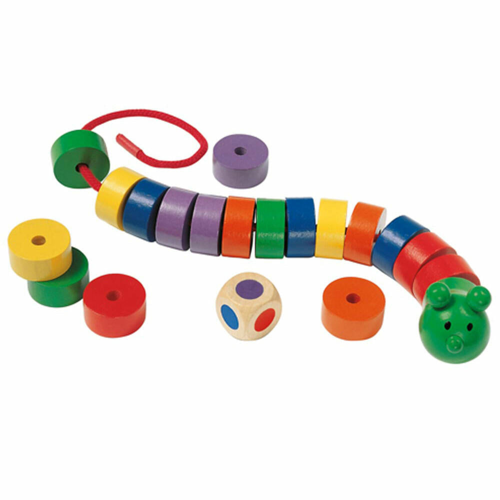 Selecta Spielzeug Fädelraupe, Fädel Spiel, Kinderspiel, Kinderspielzeug, Holz, 20 cm, 63005