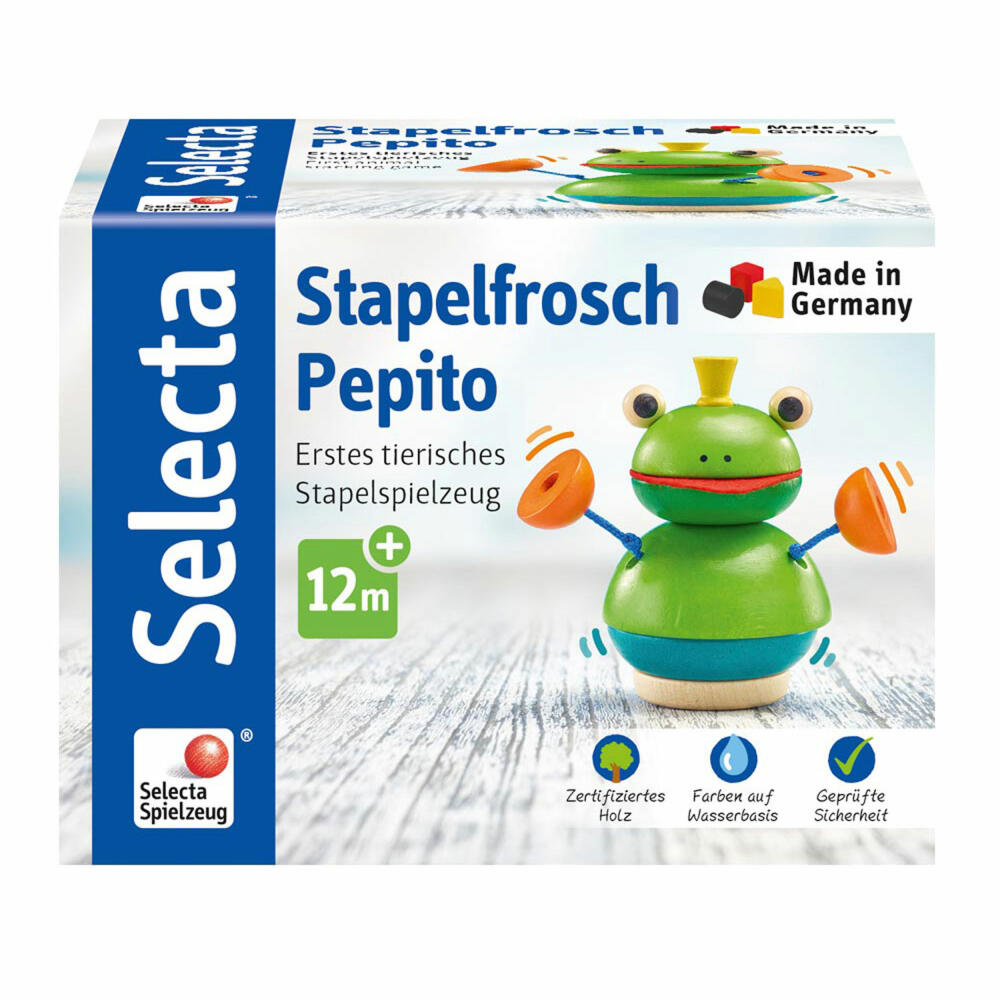 Selecta Spielzeug Stapelfrosch Pepito, Stapel Spiel, Kleinkindspiel, Kleinkindspielzeug, Holz, 10 cm, 62041