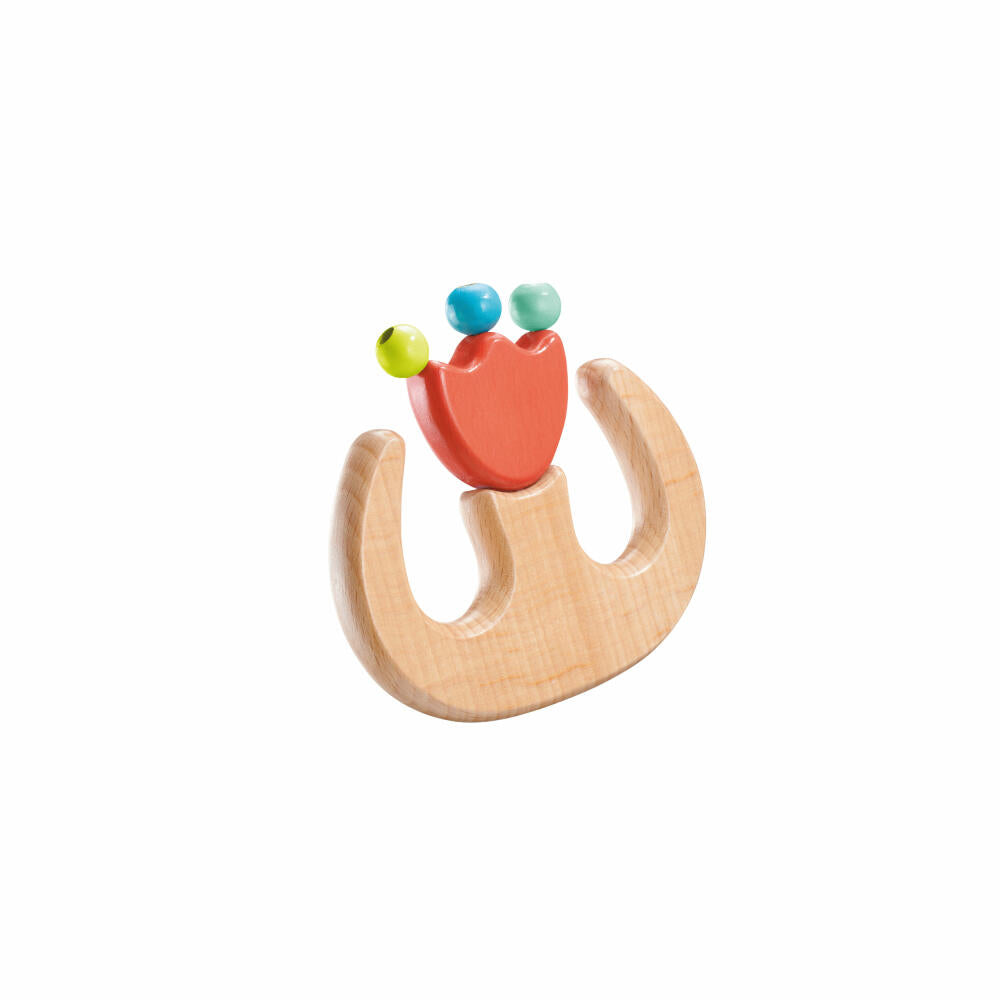 Der ergonomisch geformte Greifling aus massivem Buchenholz eignet sich durch seinen innovativen Griff ideal für erste Greifübungen.
