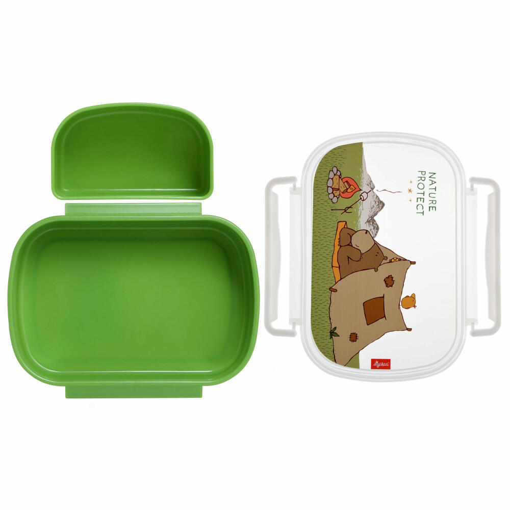 sigikid Brotzeitbox Forest Grizzly, Brotbox, Brotdose, Butterbrotdose, Vesperdose, Kinder, Kunststoff, Grün, 24780
