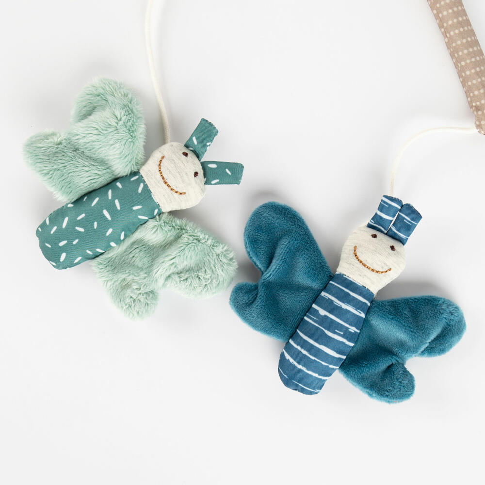 sigikid yellow - the sunshine collection - steht für eine moderne und harmonische Farbzusammenstellung. Die Kollektion ist typisch sigikid: positiv und voller Lebensfreude! sigikid-Mobiles sind besonders detailliert ausgearbeitet und bieten erste Unterhaltung für Ihr Baby in der Wiege, im Kinderbett oder am Wickeltisch. So bunt und schön wie eine Frühlingswiese erlebt das Baby dieses reizende Mobile aus Textil. Die vier Schmetterlinge sind jeweils einzeln an einer Kordel fixiert und nach unten geneigt. Wenn die bunten Figuren schön hin und her schaukeln werden Babys neugierig. Die wachen Augen beobachten und verfolgen alles, was sich bewegt. Zuerst erkennen sie nur Umrisse, denn in den ersten Monaten ist das Baby noch kurzsichtig. Später lernt Ihr kleiner Schatz Gegenstände in Farbe und Form zu unterscheiden. Mobiles sind ein sinnvolles Babyspielzeug während des ersten Lebensjahres, denn sie fördern die Entwicklung Ihres Lieblings und schärfen die Sinne. Alle sigikid Mobiles lassen sich einfach mittels Schlaufe oder Haken an einem separat erhältlichen Mobilehalter (Artikel-Nr. 49002, 75090, 40940 und 42794) befestigen. Ebenfalls separat erhältlich ist eine Spieluhr (Artikel-Nr. 41286), die das Mobile dreht und dabei Brahms Wiegenlied spielt. Mobiles sollten immer außerhalb der Reichweite von Babys und Kleinkindern angebracht werden. Sobald Ihr Kind die Fähigkeit hat, sich auf Händen und Knien aufzurichten, sollten Sie das Mobile entfernen, denn dann besteht Gefahr, dass sich Ihr Kind verheddert. Das Mobile ist von Geburt an geeignet und kann bei Bedarf per Handwäsche gereinigt werden.
