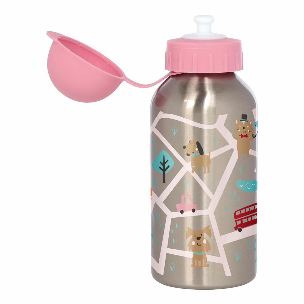 Mit den Edelstahlflaschen der Marke sigikid wird das zum Kinderspiel. Die Flasche mit dem rosa Deckel und dem tierischen Stadtmotiv wird zum alltäglichen Begleiter - egal ob in die Krippe, im Kindergarten oder bei einem gemütlichen Familienausflug. Denn Trinken ist wichtig, besonders an warmen Sommertagen! Damit hier nichts auslaufen kann, wurde die Trinkflasche mit einem sicheren Push-und-Pull-Verschluss versehen, der kinderleicht durch Ziehen und Drücken geöffnet und geschlossen werden kann. Die Flasche, die einen Inhalt von 400 ml fasst, besteht aus 18/8 lebensmittelechtem Edelstahl. Sie hat keinerlei Innenbeschichtung und ist hitzebeständig. Aber ACHTUNG, sie ist nicht isoliert und deshalb sollte man keine heißen Getränke einfüllen. Die Kindertrinkflasche ist unzerbrechlich, robust und langlebig. Das Edelstahl-Material ist geschmacks- und geruchsneutral. Des Weiteren lässt sich die Trinkflache durch die breite Einfüllöffnung problemlos befüllen.