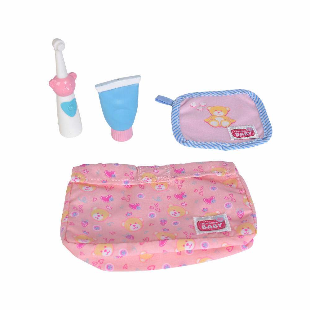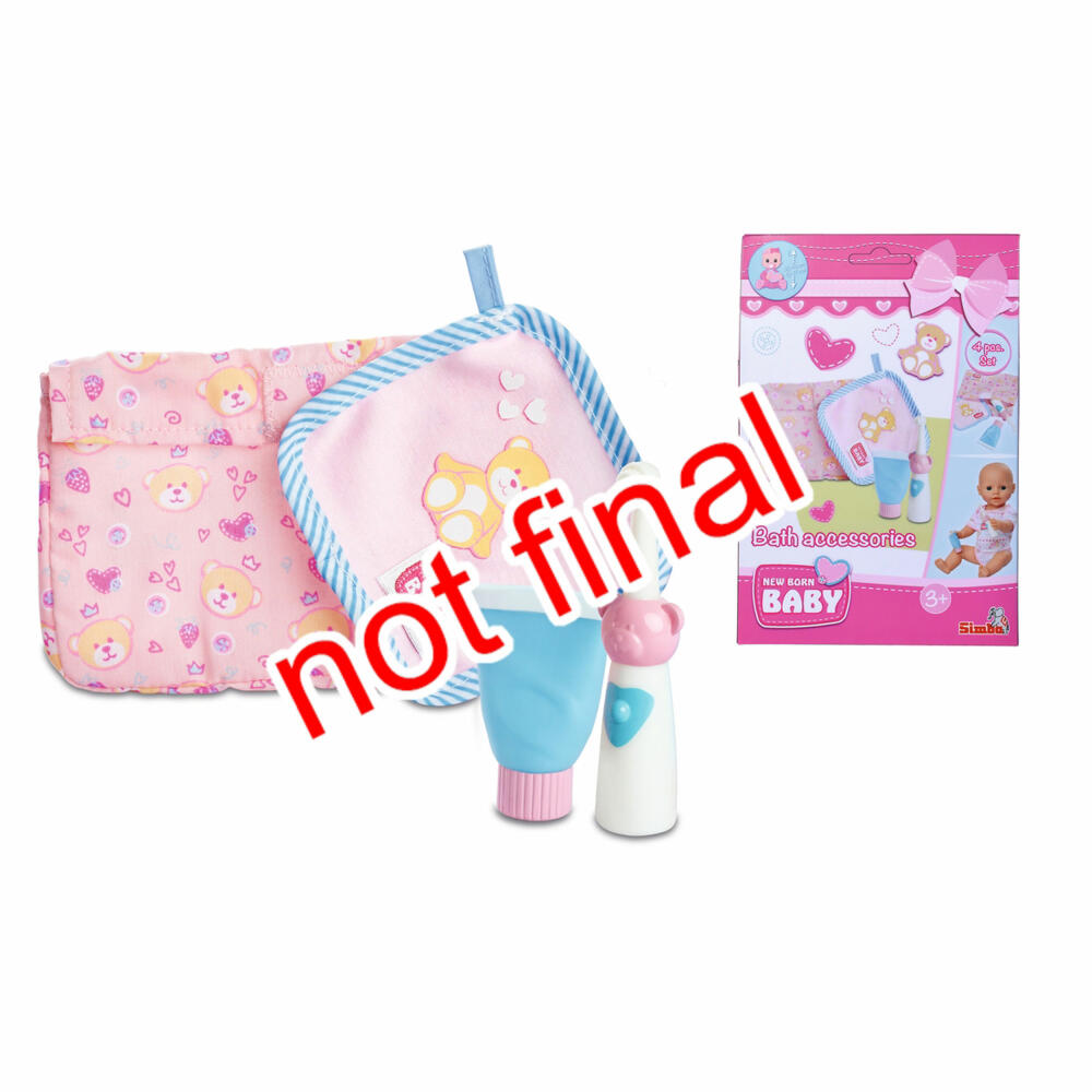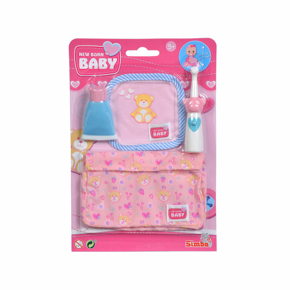 Simba New Born Baby Bad Zubehör, 4-tlg., Zahnbürste, Waschlappen, Tasche, Puppe, für 38 - 43 cm Puppen, 105560055