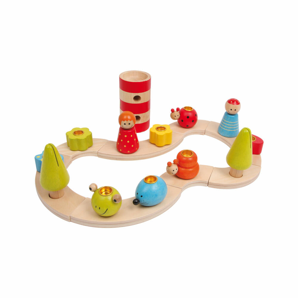 Lustiges Geburtstagsset mit vielen Kerzenhaltern verschiedener Motive, die beliebig angeordnet werden können. Durch die variabel legbaren Steckelemente aus Holz entstehen zu jedem Geburtstag immer neue Bilder.
