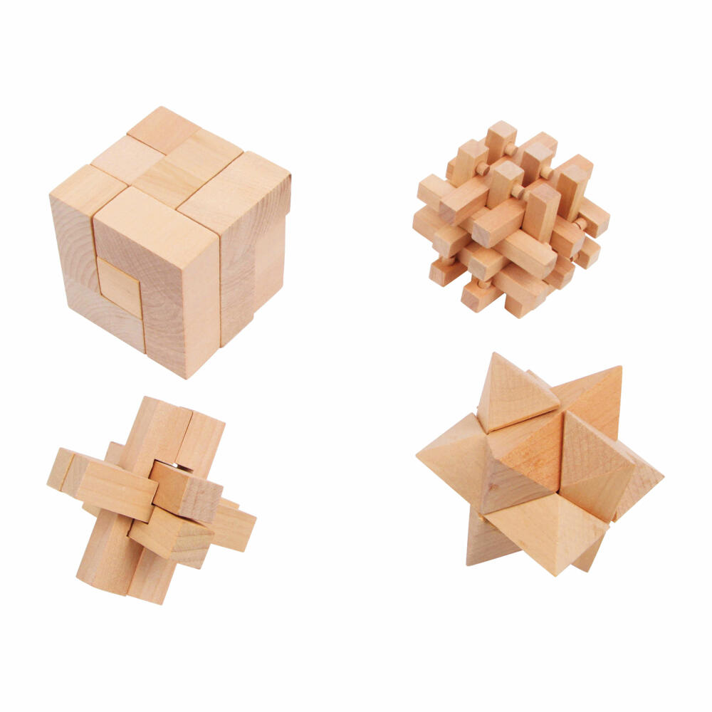 Knifflige Angelegenheit! Diese Geschicklichkeitsspiele aus Holz fordern Groß und Klein Hände heraus und lassen die Köpfe grübeln. Die verschiedenen Formen aus Naturholz müssen nach dem Auseinanderbauen wieder in ihre Urform zurückverwandelt werden. Hier sind Konzentration und Geschick gefragt! Wer schafft diese Herausforderung am schnellsten?