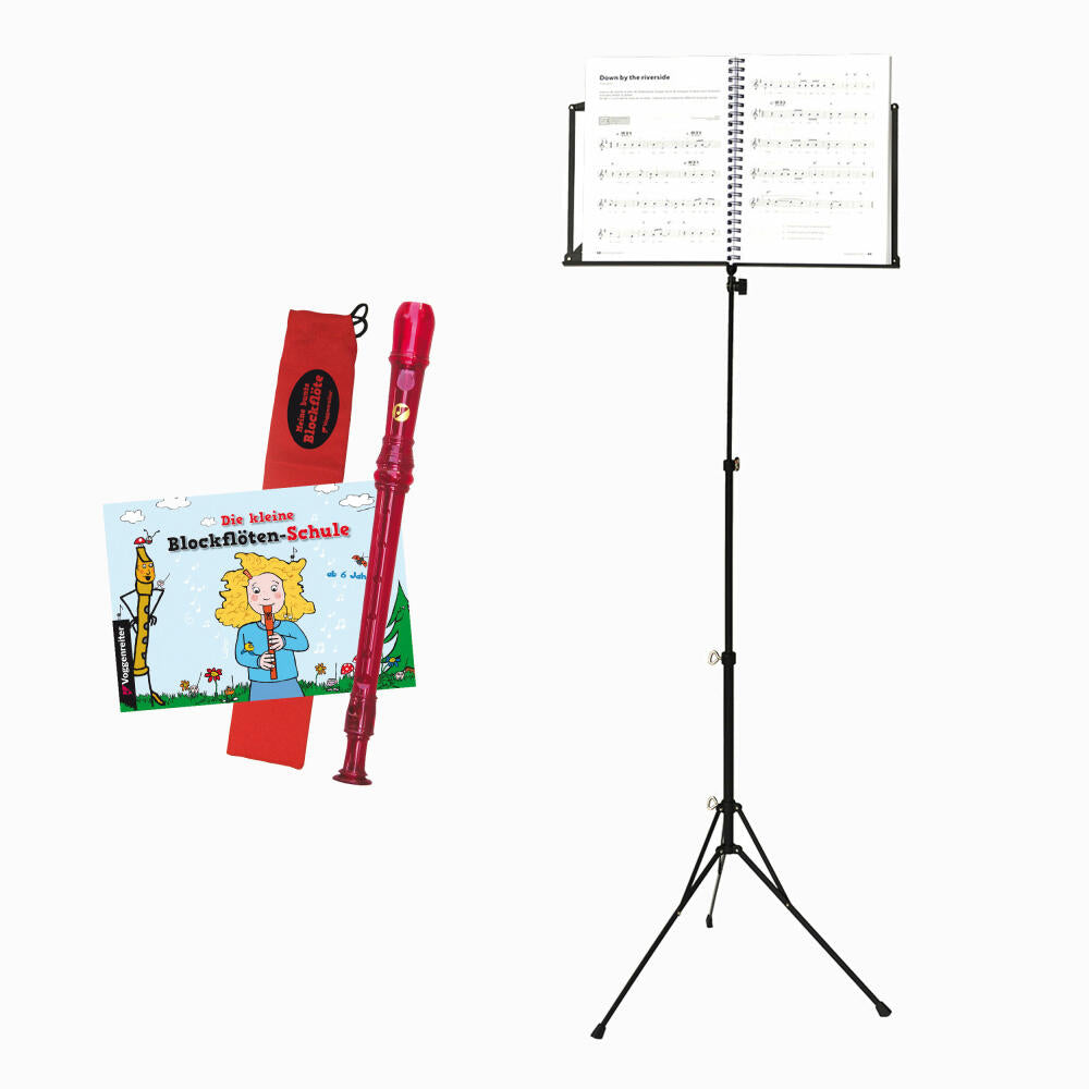 Voggenreiter Blockflöten-Set, 4-tlg., Blockflöte, Volt Notenständer NS-100, Flöte, Barocke Griffweise