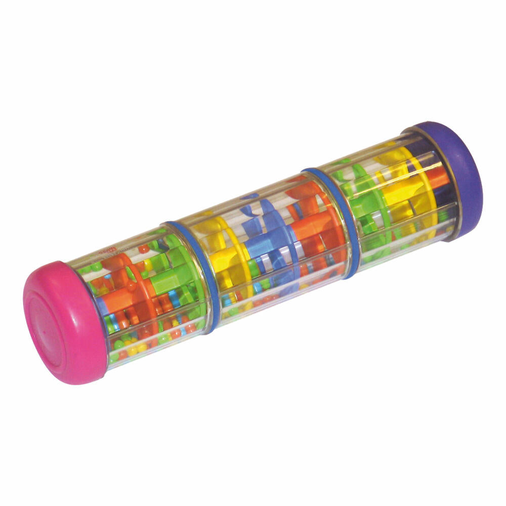 Dieses Klangspielzeug mit dem unverwüstlichen Kunststoffgehäuse ist dem beliebten exotischen Rainmaker nachempfunden und imitiert das Geräusch des plätschernden, rauschenden Regens. Regenbogenfarbige Kügelchen strömen bei jeder Bewegung durch die durchsichtige Röhre.