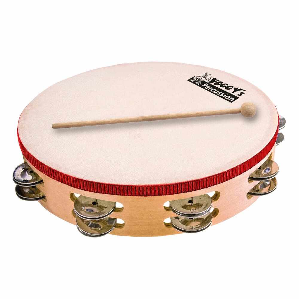 Mit diesem Tamburin darf nach Herzenslust und -laune getrommelt, geschüttelt und geklingelt werden, bis die Eltern die Notbremse ziehen! Das unverwüstliche Kunststoff-Fell widersteht auch härterem Einsatz und dank des praktischen Grifflochs liegt das Tamburin gut in der Hand. Mit der flachen Hand geschlagen, mit dem Schlägel gespielt oder geschüttelt: Dank der angefasten Ringkante klingt Voggy’s Tamburin mit seinen 12 Doppelschellen immer kräftig und klar!