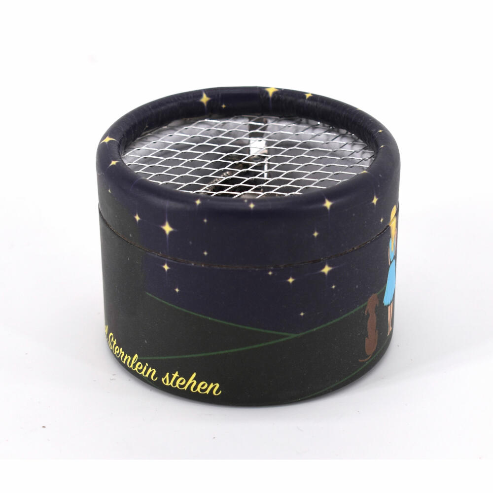 Die Spieluhren haben einen Durchmesser von 6 cm und eine Höhe von 4,5 cm. Die Handkurbel ist dreifach gesichert und lässt sich von kleinen und großen Fingern einfach bedienen. Das millionenfach bewährte Qualitäts-Spielwerk hat einen widerstandsfähigen Metallrahmen, doppelt verschraubte Metall-Klangzungen und ist fest und sicher auf dem Resonanzboden befestigt. Ein Metallgitter schützt die Spieluhr und ermöglicht zugleich einen ungestörten Blick auf die faszinierende Mechanik. Das umweltfreundliche, robuste Kartongehäuse schützt vor Verunreinigungen und Beschädigungen und dank des abnehmbaren Deckels ist die Reinigung der Spieluhren kinderleicht.
