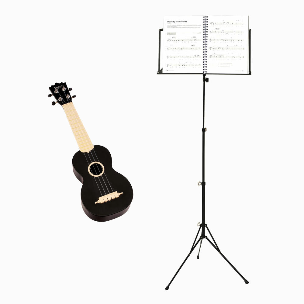 Voggenreiter Ukulelen Set, 2-tlg., Voggys Outdoor-Ukulele, Volt Notenständer NS-100, Gitarre, Notenpult