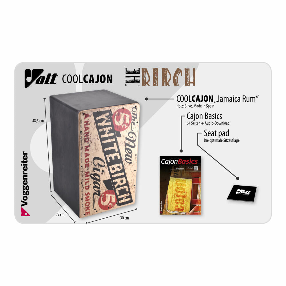 Voggenreiter Volt Cool Cajon 2 The Birch, Trommelkiste, Rythmusinstrument, Birkenholz, 48.5 cm, 1280