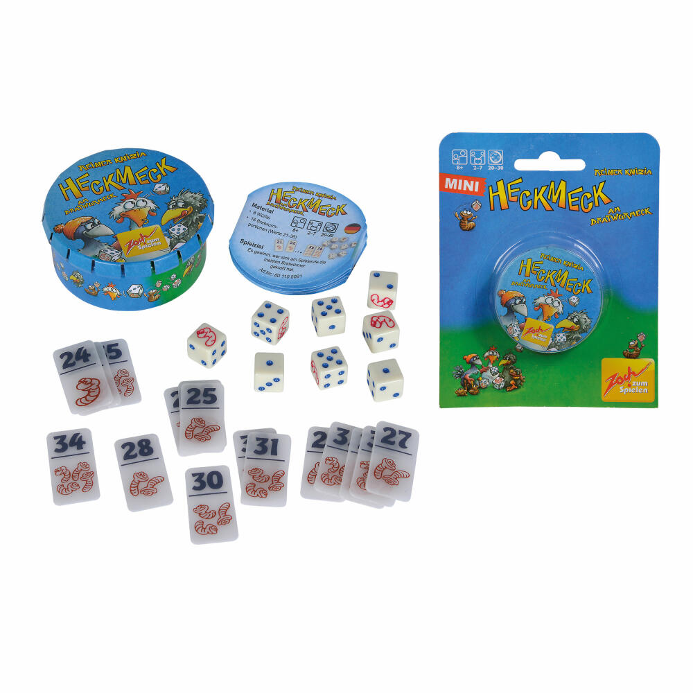 Ein turbulentes Würfelspiel im beliebten Hühnerambiente. In der Spielmitte warten auf dem Grill, 16 unterschiedlich wertvolle Portionen Bratwürmer darauf, von den würfelnden Hühnern ergattert zu werden. Dazu pickt ein Spieler identische Würfelsymbole aus seinem Wurf heraus und würfelt mit den verbliebenen Würfeln weiter. Erreicht sein Würfelergebnis den Wert einer ausliegenden Bratwurmportion, kann er diese nehmen oder anderen klauen! Heckmeck am Bratwurmeck ist ein Würfelspiel für schlaue Vögel, die den Bratwurm gerochen haben.